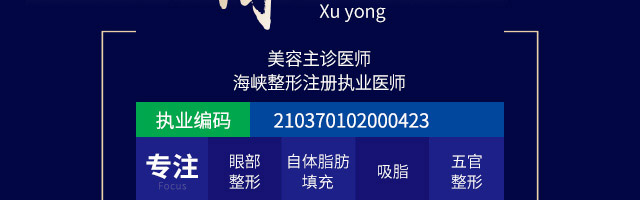 徐永,美容主诊医师,海峡整形外科副院长,外科临床医学专业毕业。